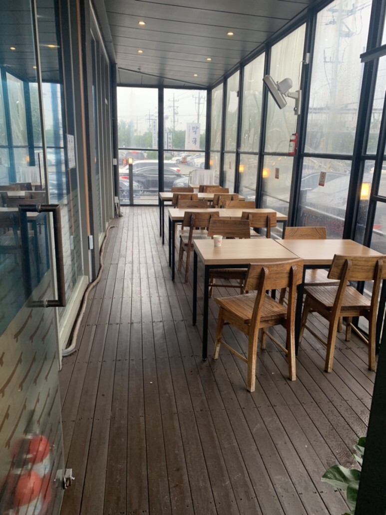 야외에도 테이블이 있습니다.